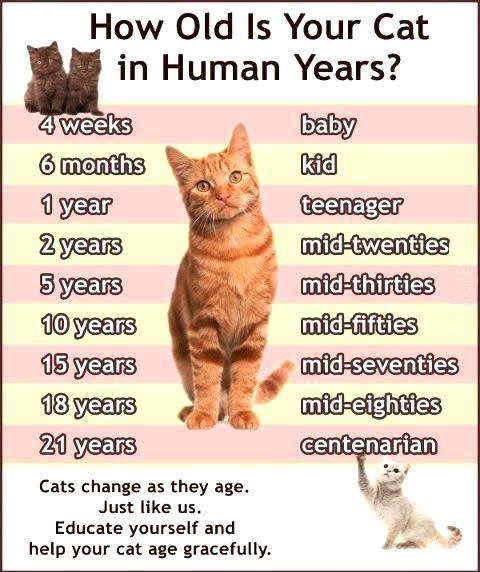 How Old is Your Cat in Human Years? - Mill Creek Animal ... from www.millcreekvet.com How long do cats live? A cat years calculation is a fun way to work out how old a feline is in human years. The following cat age conversion chart may be used to translate cat years into human years. A tiny mouse has a short lifespan, a rabbit somewhat longer and a dog between 7 and 20 years depending on its breed or size. After these two years have passed, the outdoor cat's age accelerates faster than the one kept indoors. When creating a warrior, it is important to know what their age is. Generally, an animal's longevity is proportional to its size (with the exception of tortoises, man and a few other animals). The image above is an approximate calculation of how many years a cat would be if it were human.